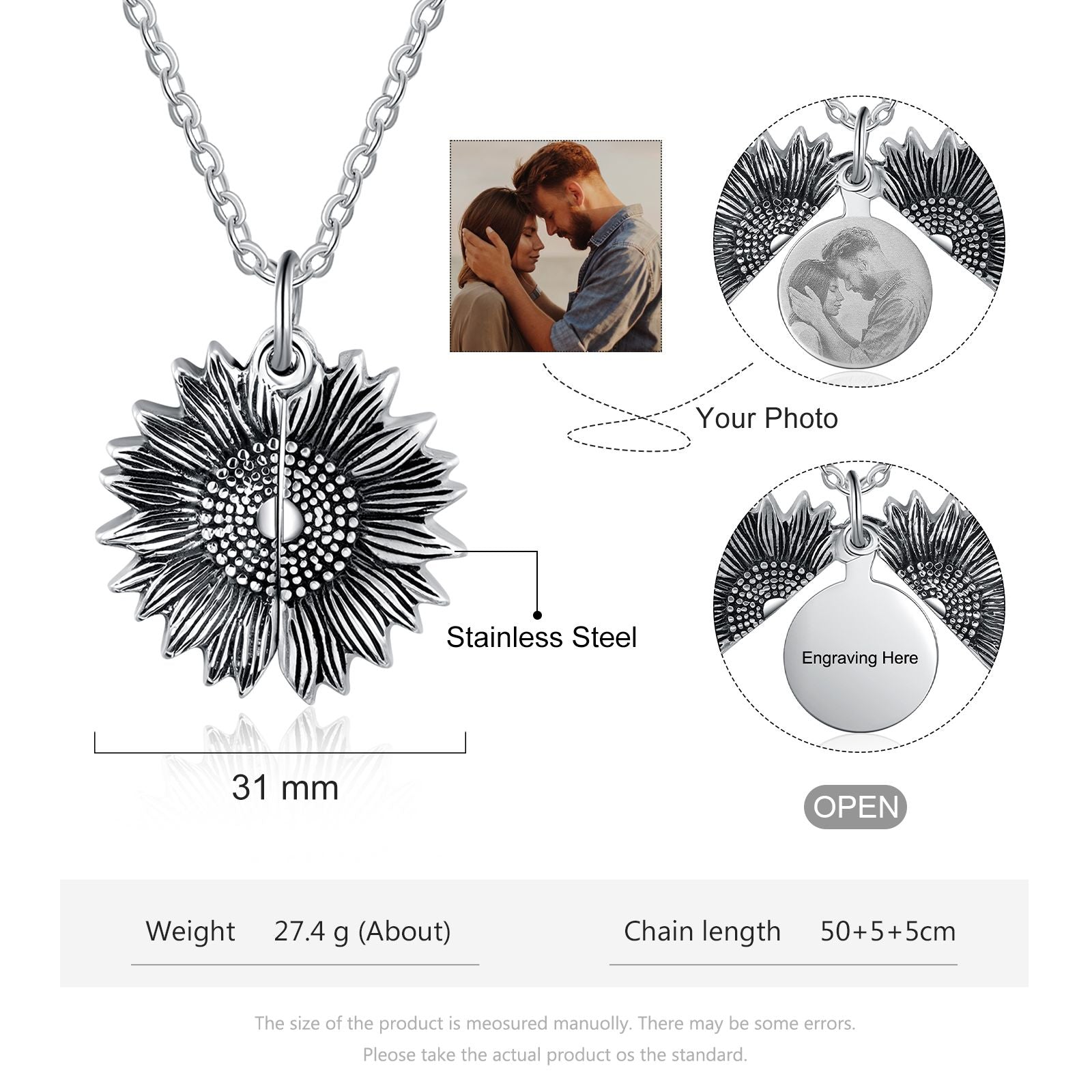 2025 New Arrival Sunflower Custom Photo Locket Necklace For Women