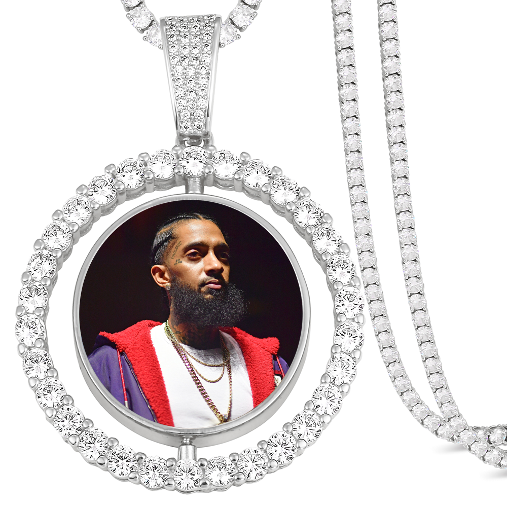 Custom Photo Round Rotated Medallion Memory Pendant Necklace- Silver Medallion Necklace For Men and Women
