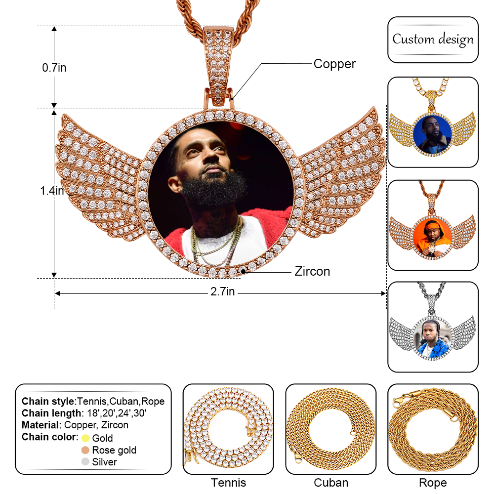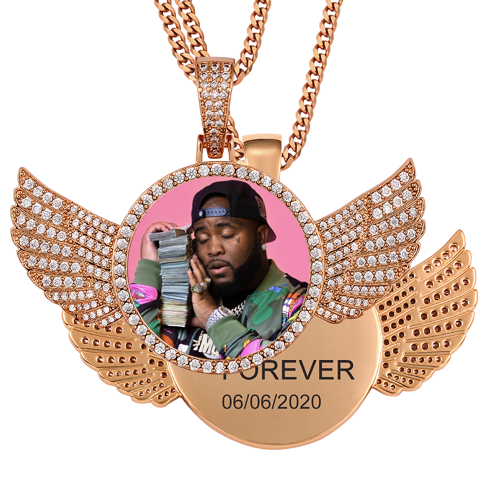 Custom Photo Wings Medallion Memory Pendant Necklace- Rose Gold Medallion Necklace For Men and Women
