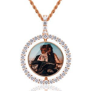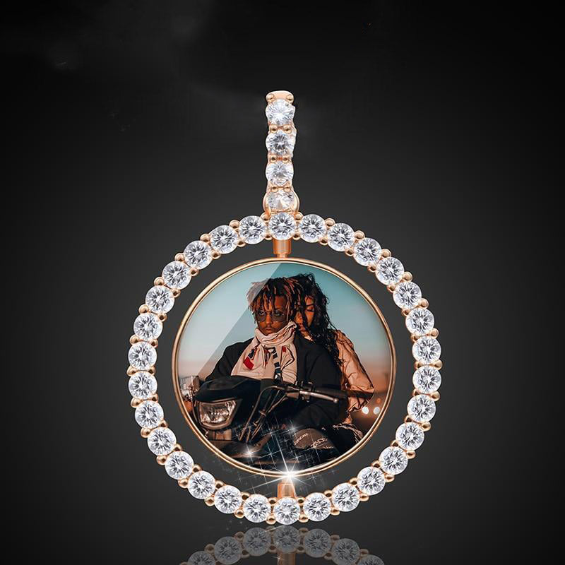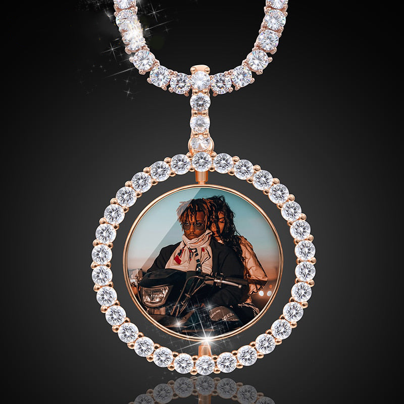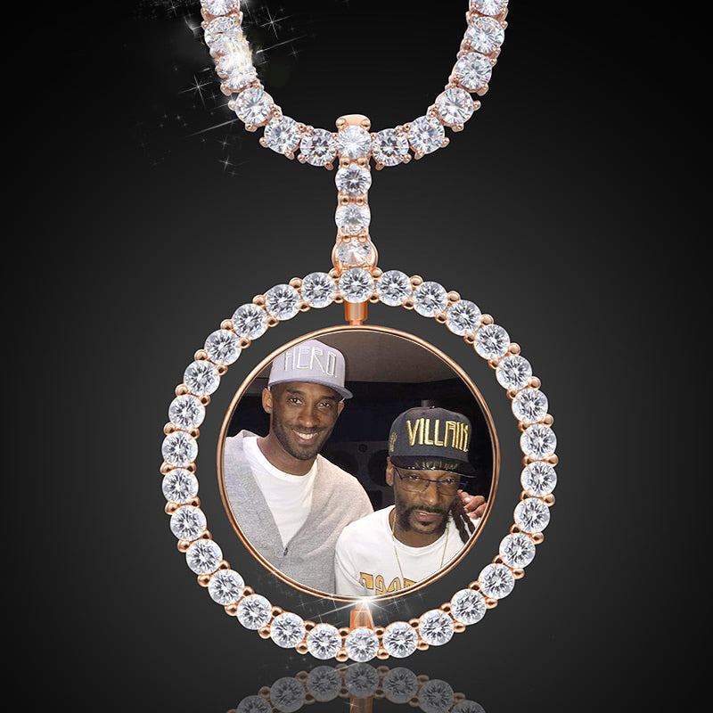 Hip Hop Necklace-Custom Photo Rotating Double-sided Medallions Pendant Necklace