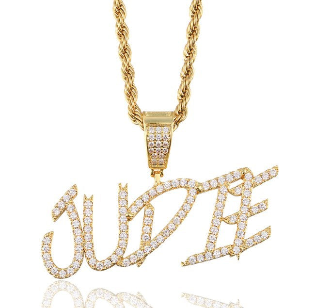 Personalized Premium Initial Letter Nameplate Necklace- Iced Out Hip Hop Name Necklace